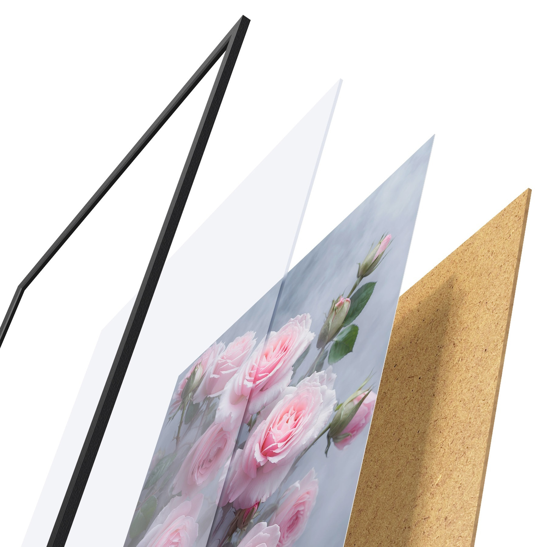 El póster consta de marco, plexiglás, imagen impresa y soporte de aglomerado. El póster puede colgarse inmediatamente en la pared gracias a los soportes de la parte posterior.