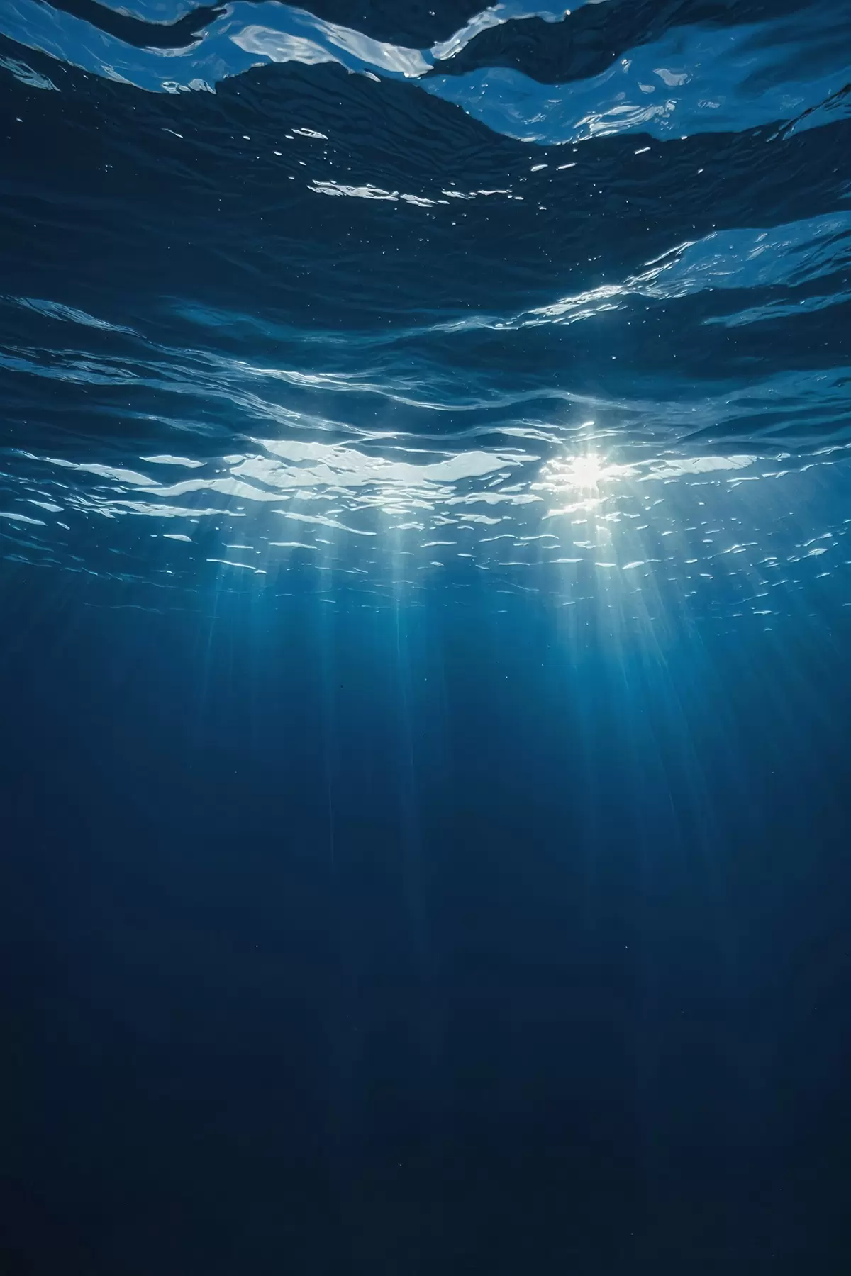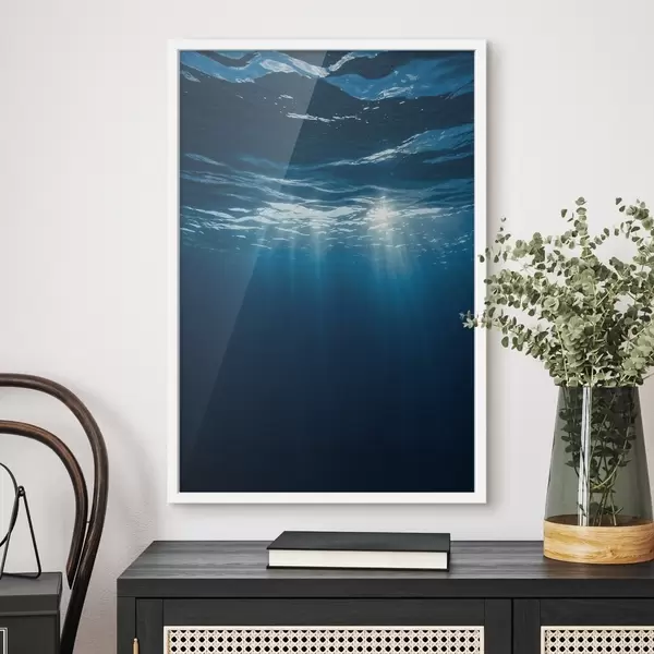 Poster Rayos de luz bajo el agua en el profundo océano azul Nr f44897