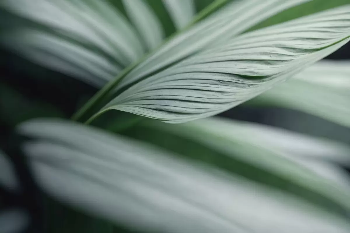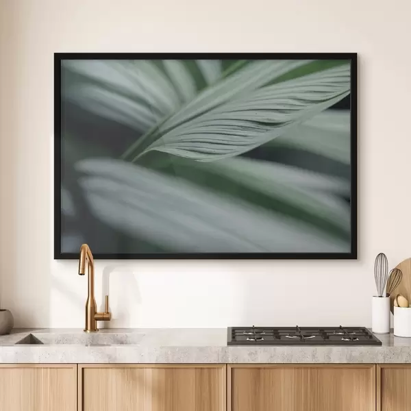 Poster Hojas tropicales con gotas de agua en un ambiente brumoso Nr f44903