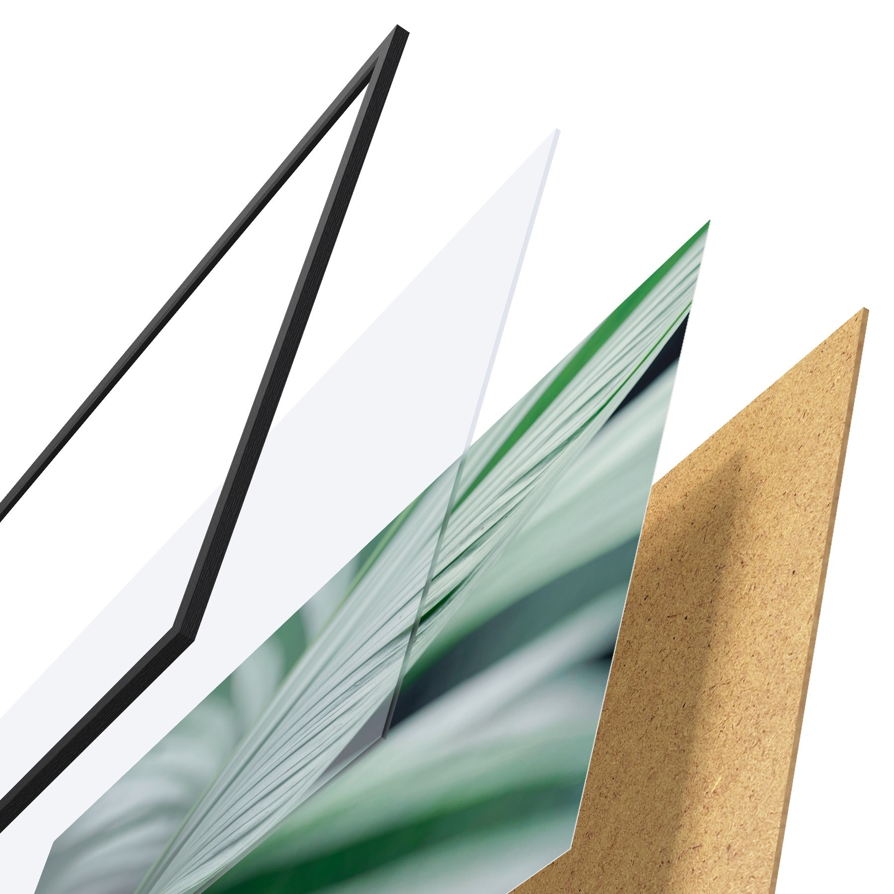 El póster consta de marco, plexiglás, imagen impresa y soporte de aglomerado. El póster puede colgarse inmediatamente en la pared gracias a los soportes de la parte posterior.