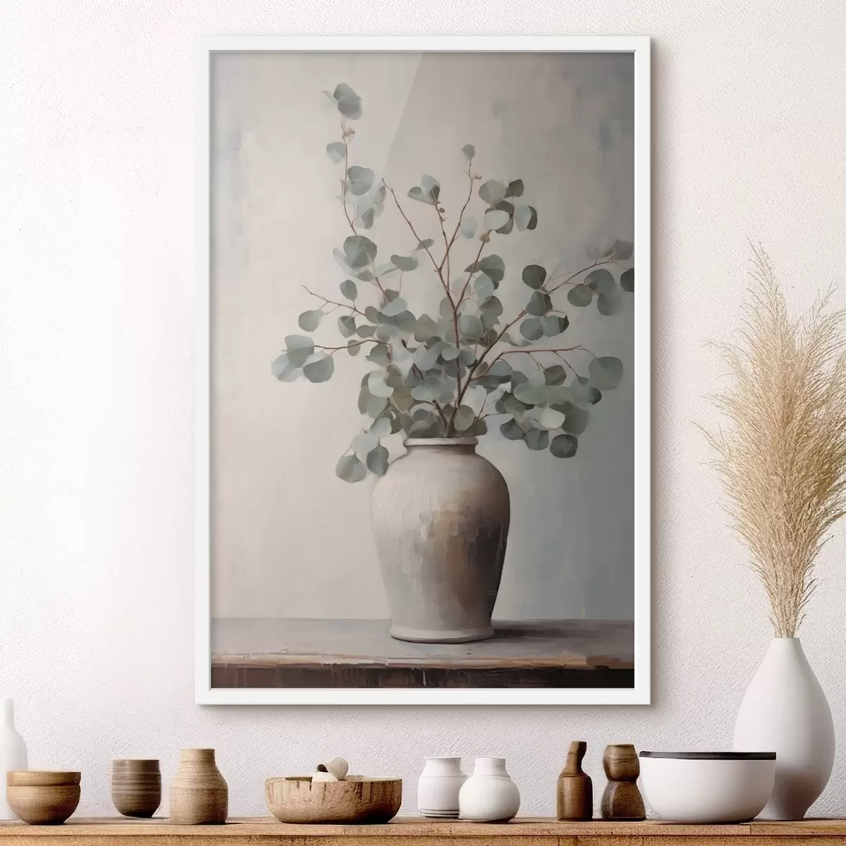 Poster Ramas de eucalipto en jarrón de barro Nr f44906