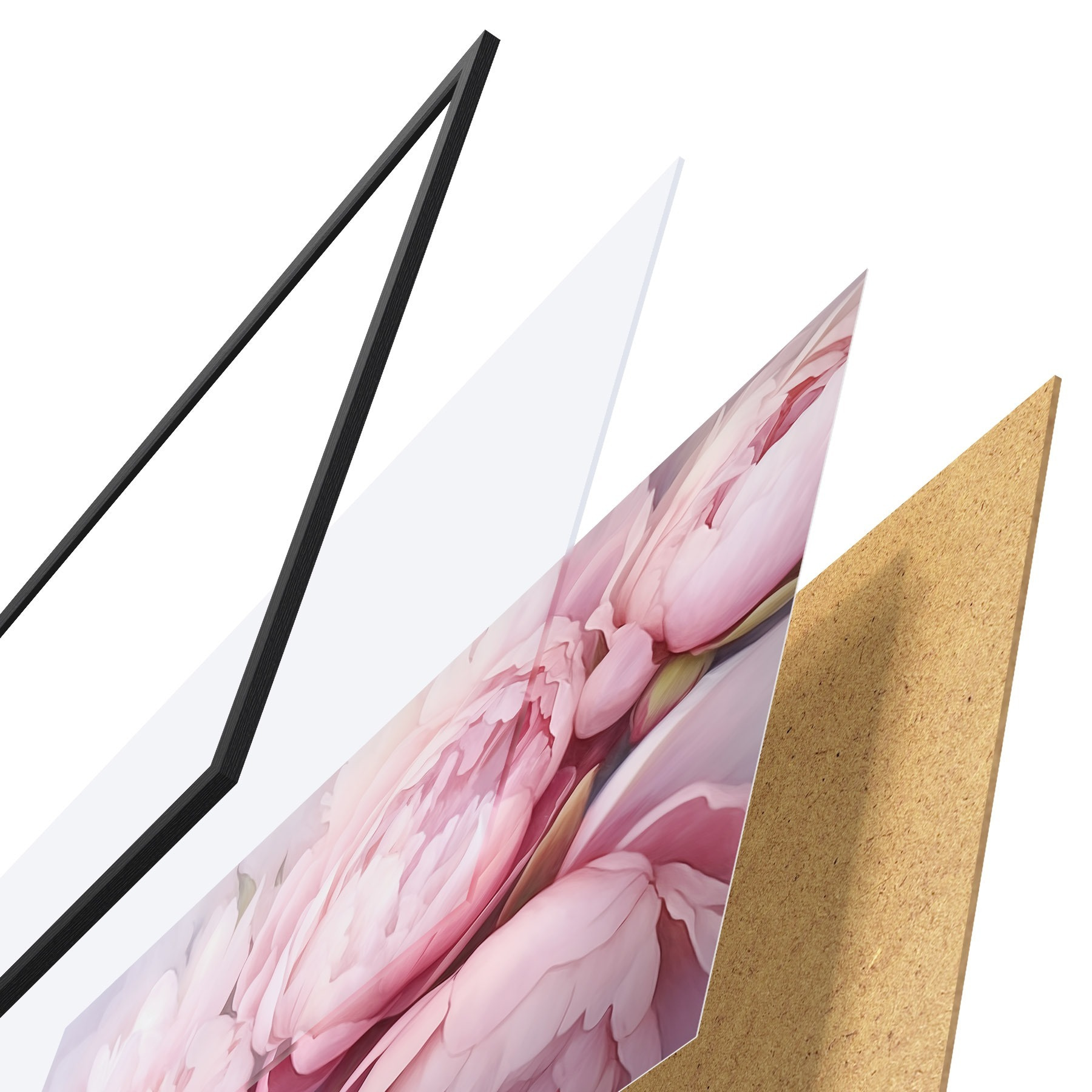 El póster consta de marco, plexiglás, imagen impresa y soporte de aglomerado. El póster puede colgarse inmediatamente en la pared gracias a los soportes de la parte posterior.
