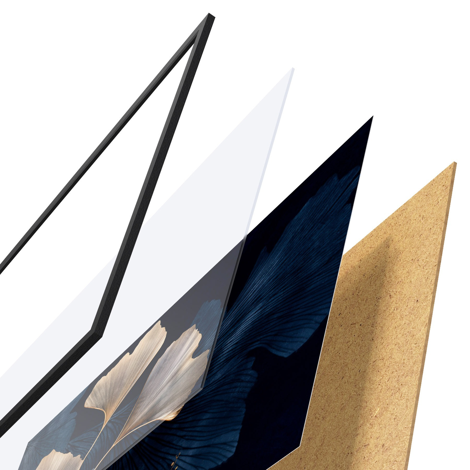 El póster consta de marco, plexiglás, imagen impresa y soporte de aglomerado. El póster puede colgarse inmediatamente en la pared gracias a los soportes de la parte posterior.