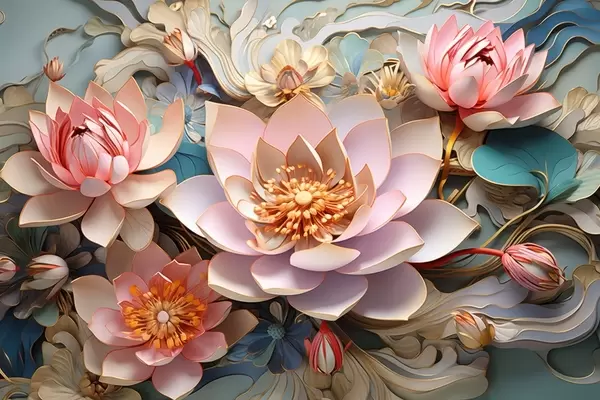 Poster Lotos rosa-naranja en estilo de dibujo 3D Nr f44934