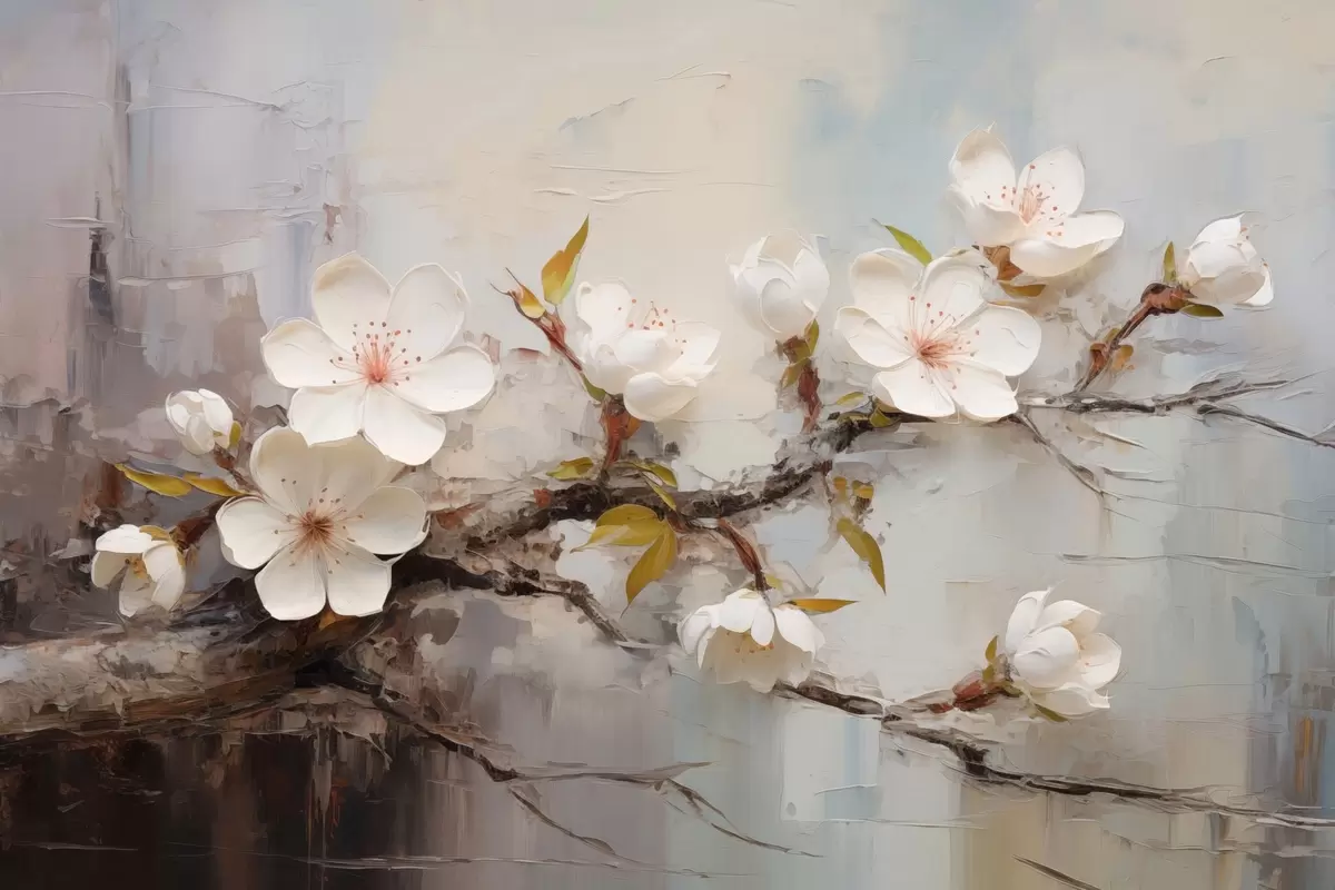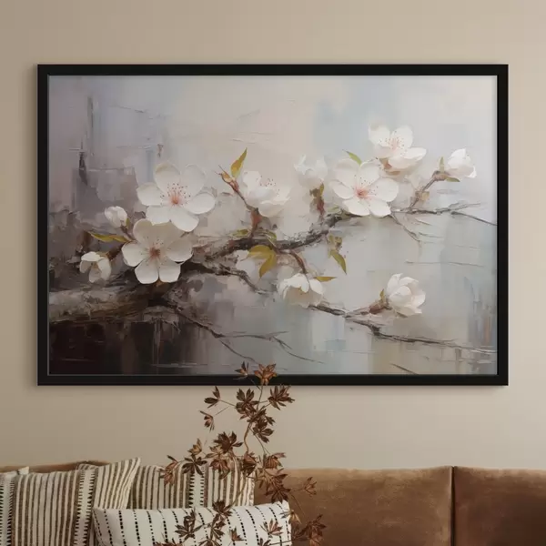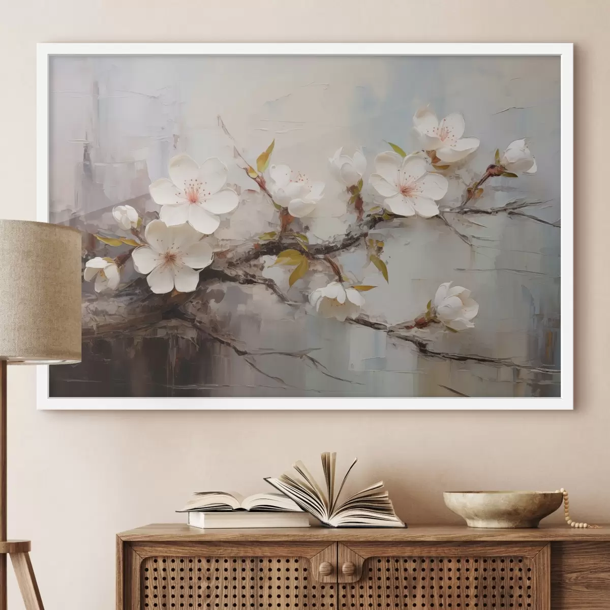 Poster Flores blancas con detalles rosas sobre un fondo abstracto f44935
