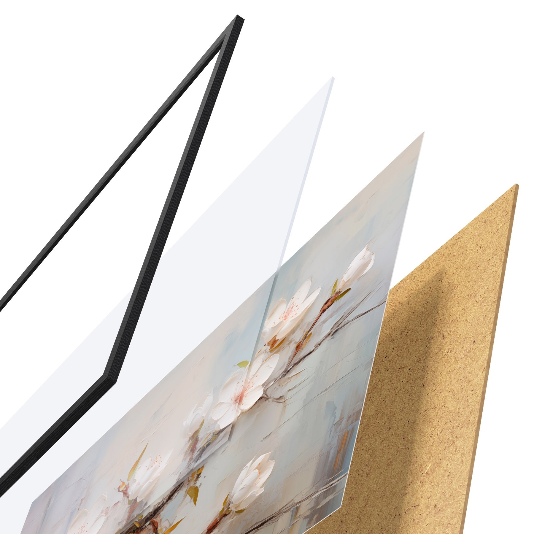 El póster consta de marco, plexiglás, imagen impresa y soporte de aglomerado. El póster puede colgarse inmediatamente en la pared gracias a los soportes de la parte posterior.