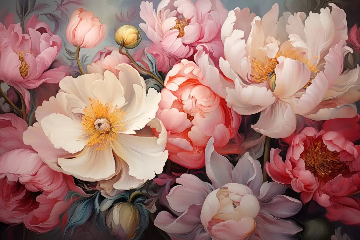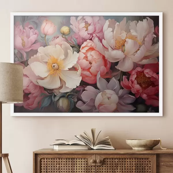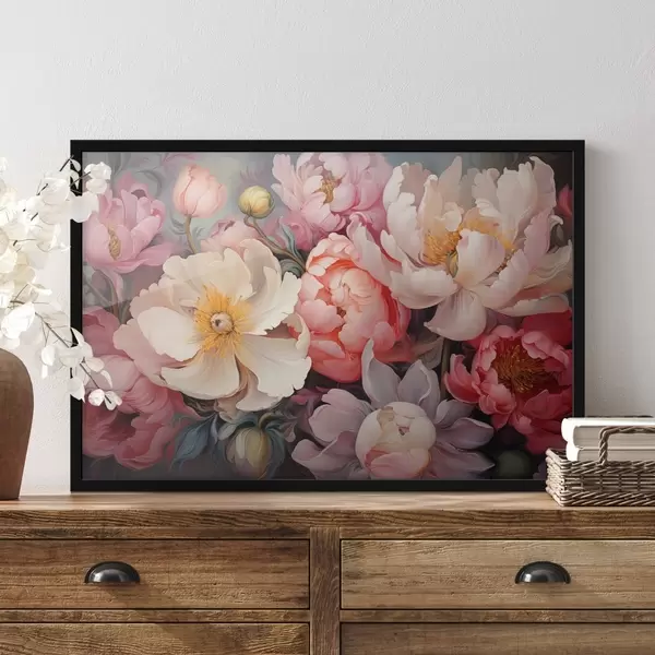 Poster Exuberantes peonías en tonos rosas al óleo Nr f44936