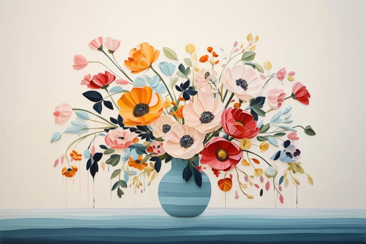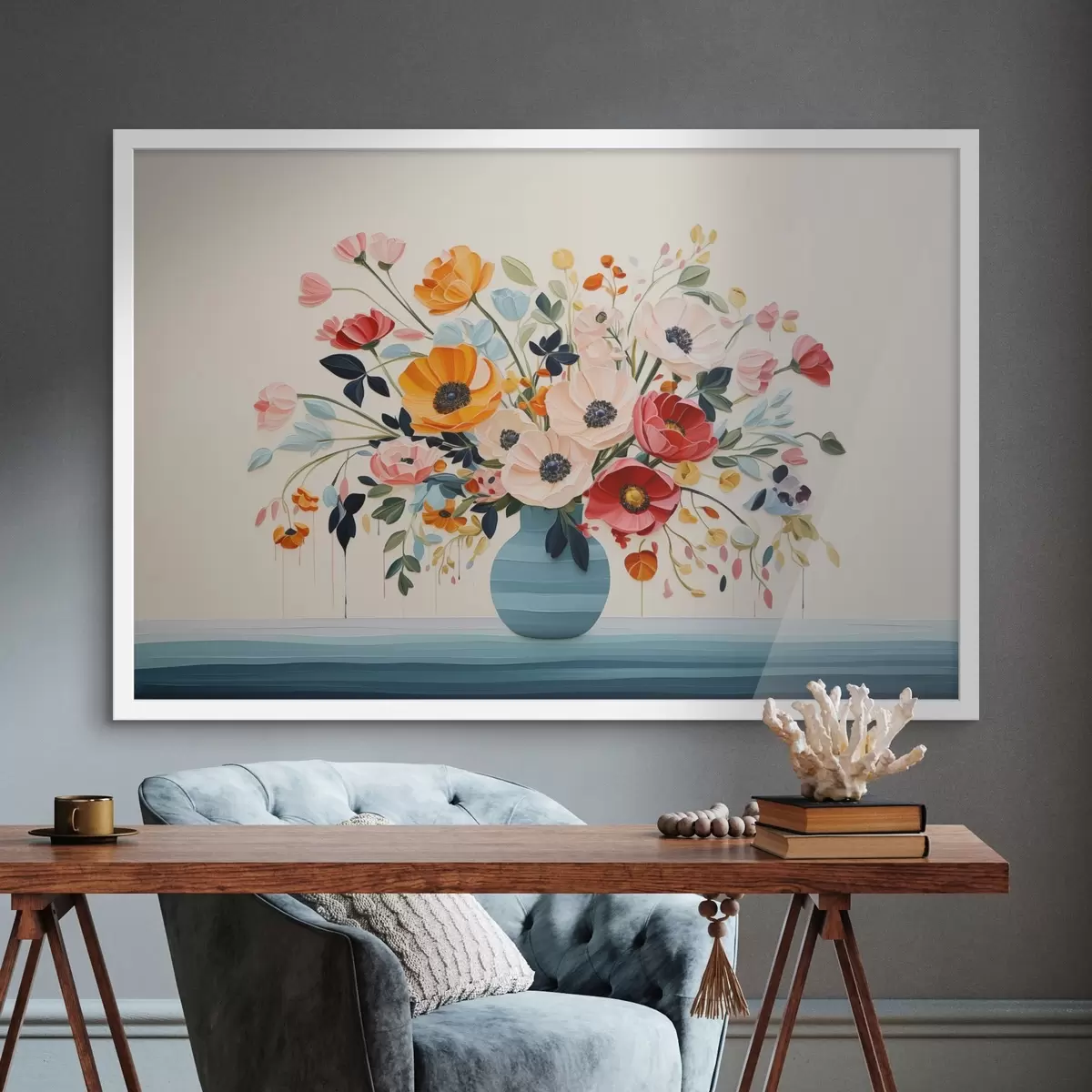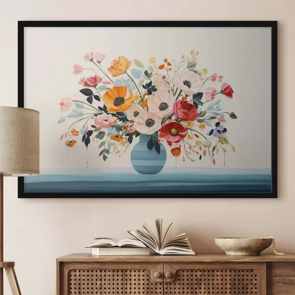 Poster Colorido ramo de flores en un jarrón azul de estilo decorativo f44937
