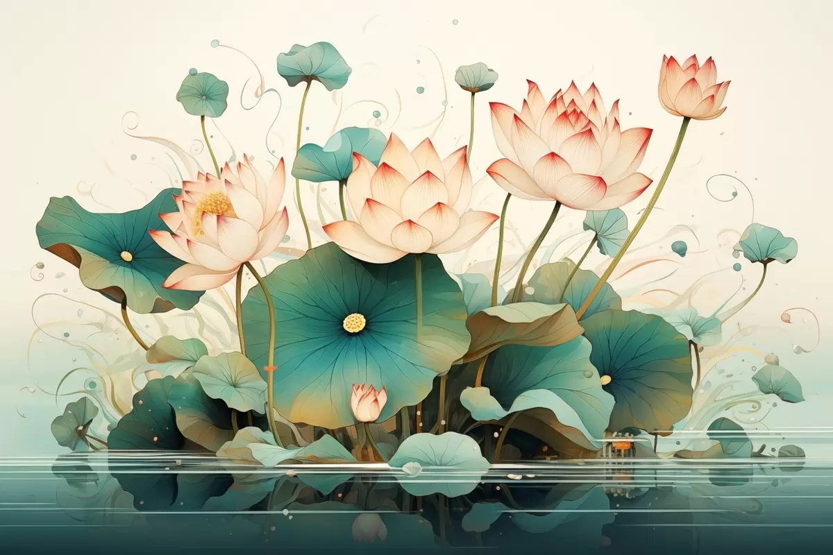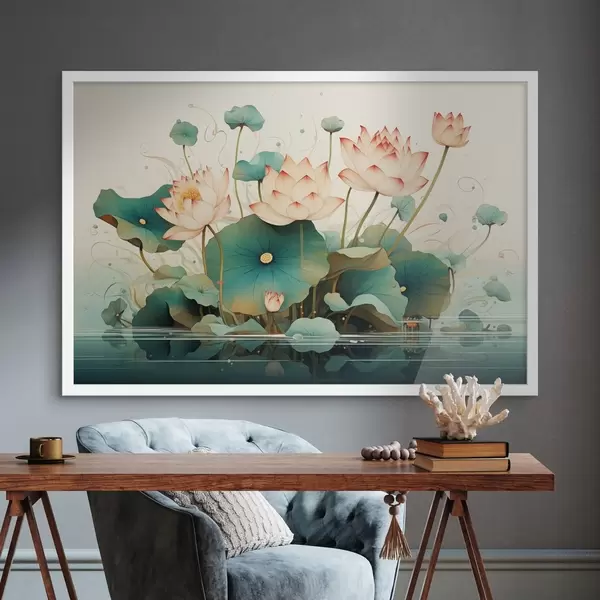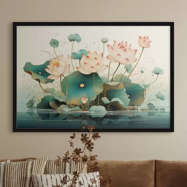 Poster Lotos con hojas grandes en estilo ilustración Nr f44939