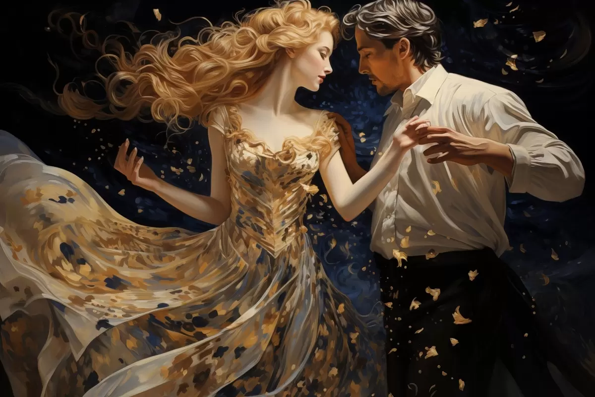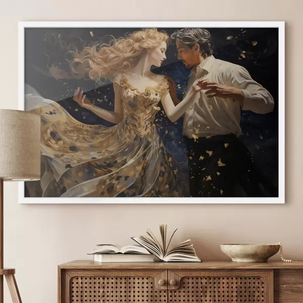 Poster Pareja en movimiento en tonos amarillo-azul en estilo pictórico f44940
