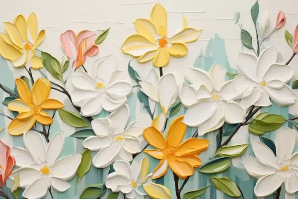 Poster Flores en relieve de colores vivos en estilo imitación pincelada Nr f44942
