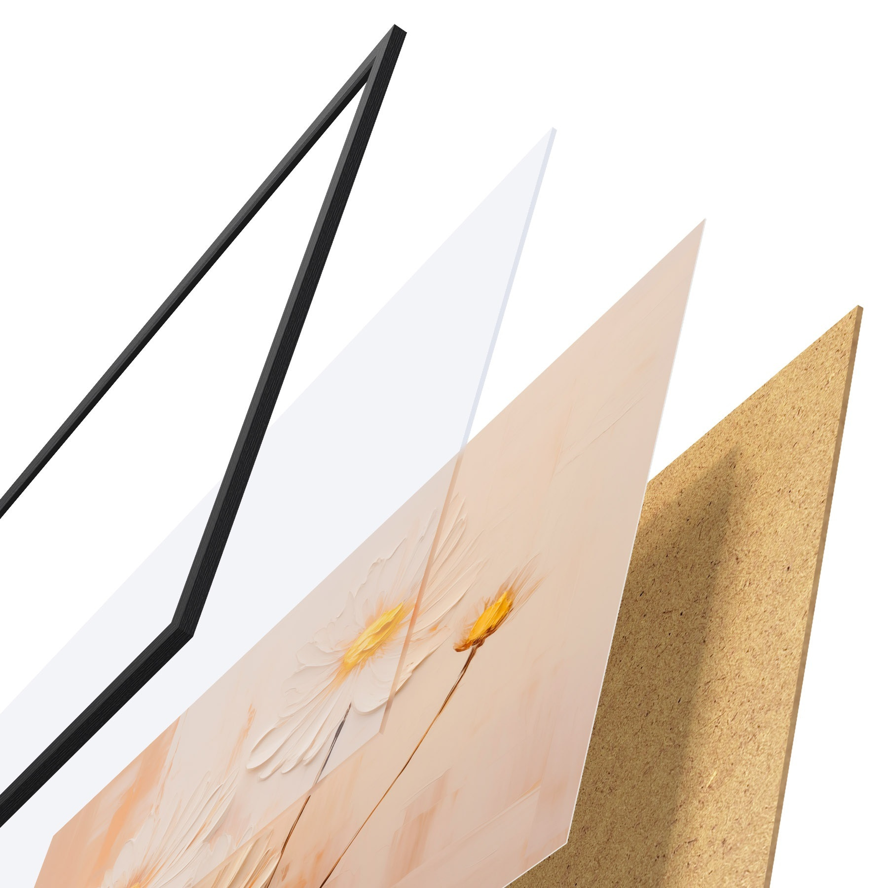 El póster consta de marco, plexiglás, imagen impresa y soporte de aglomerado. El póster puede colgarse inmediatamente en la pared gracias a los soportes de la parte posterior.