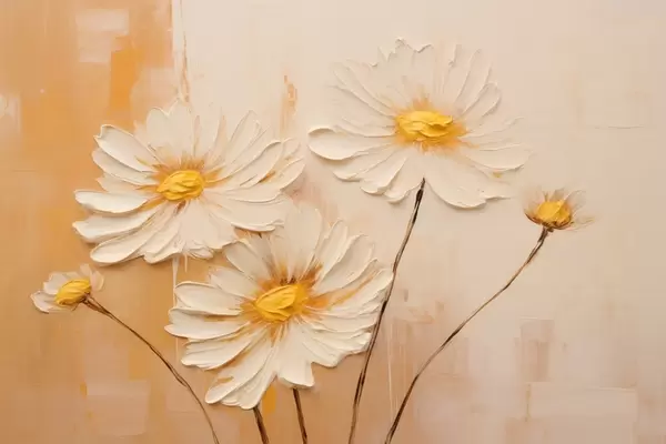 Poster Flores abstractas sobre fondo naranja al óleo f44945