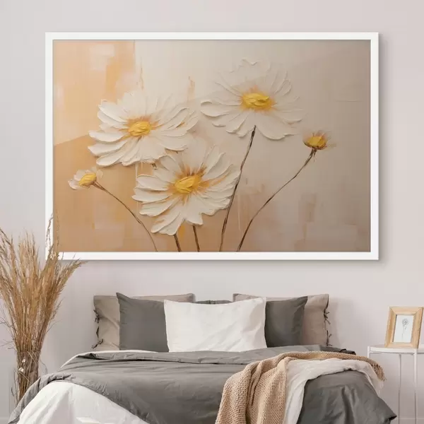 Poster Flores abstractas sobre fondo naranja al óleo Nr f44945