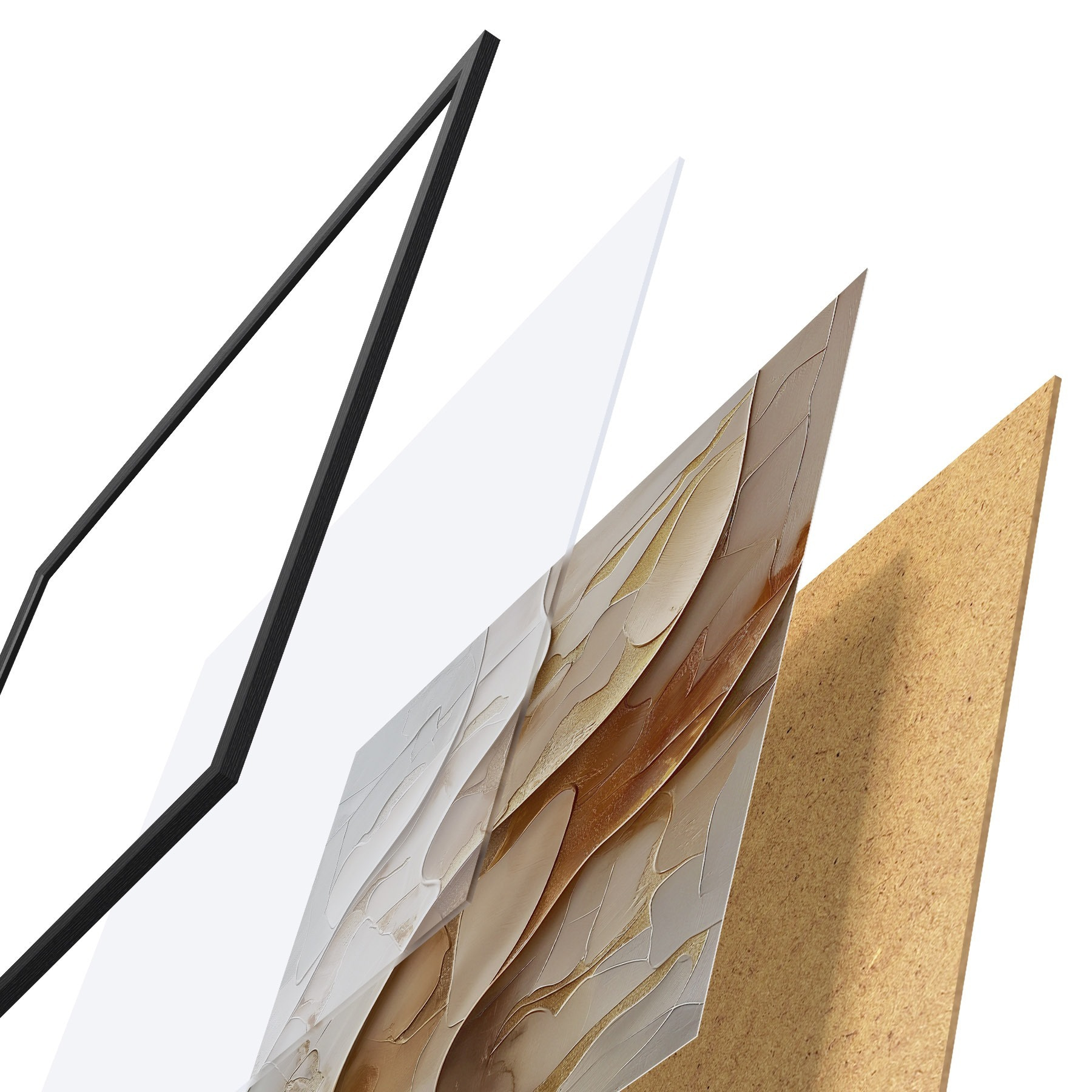 El póster consta de marco, plexiglás, imagen impresa y soporte de aglomerado. El póster puede colgarse inmediatamente en la pared gracias a los soportes de la parte posterior.