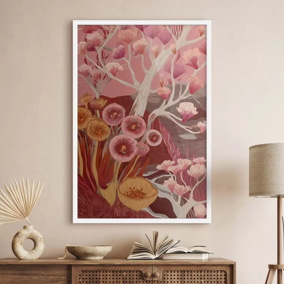 Poster Flores vintage, arte geométrico, dibujo estilo acrílico f44976