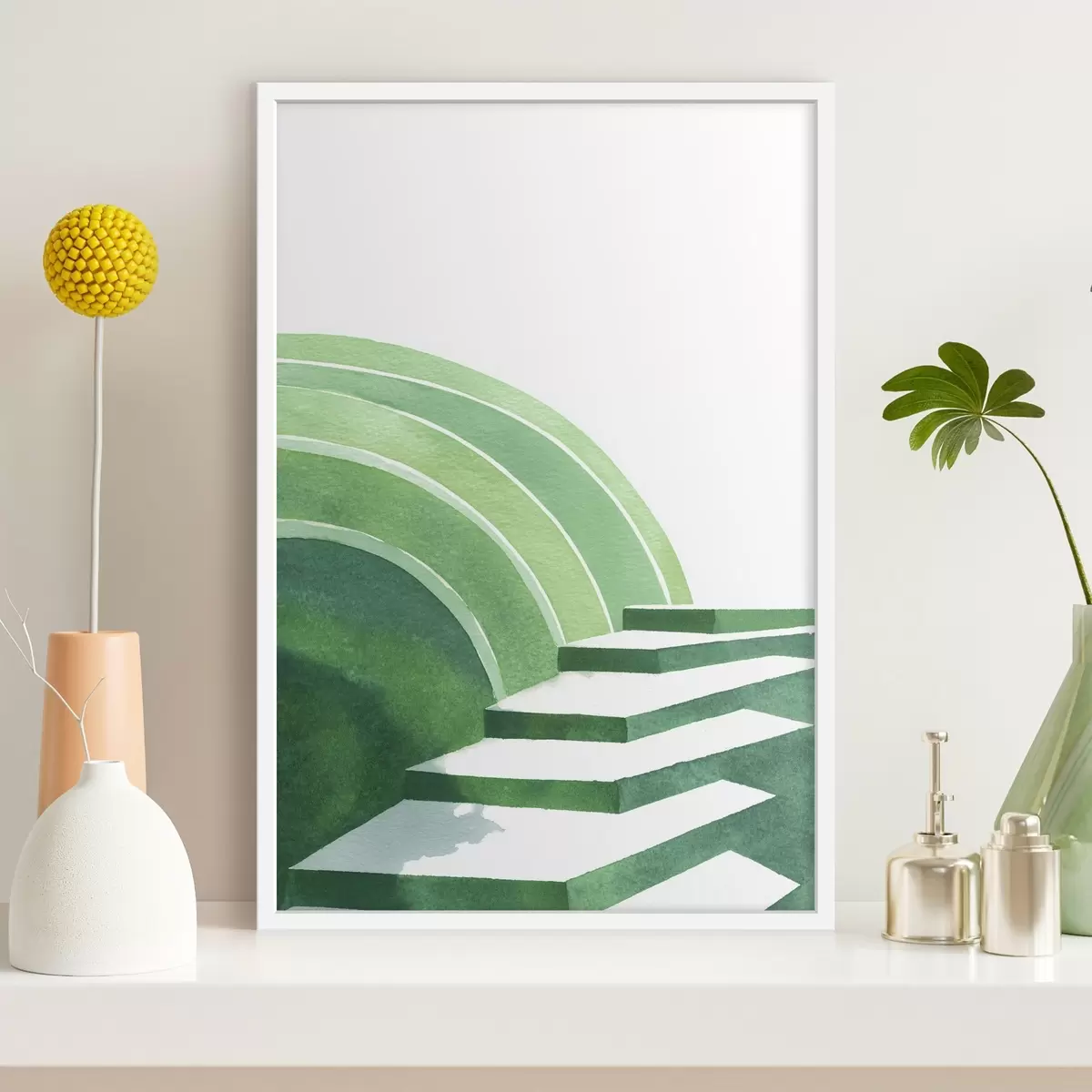 Poster Abstracción geométrica en colores verdes, estilo acuarela Nr f44981