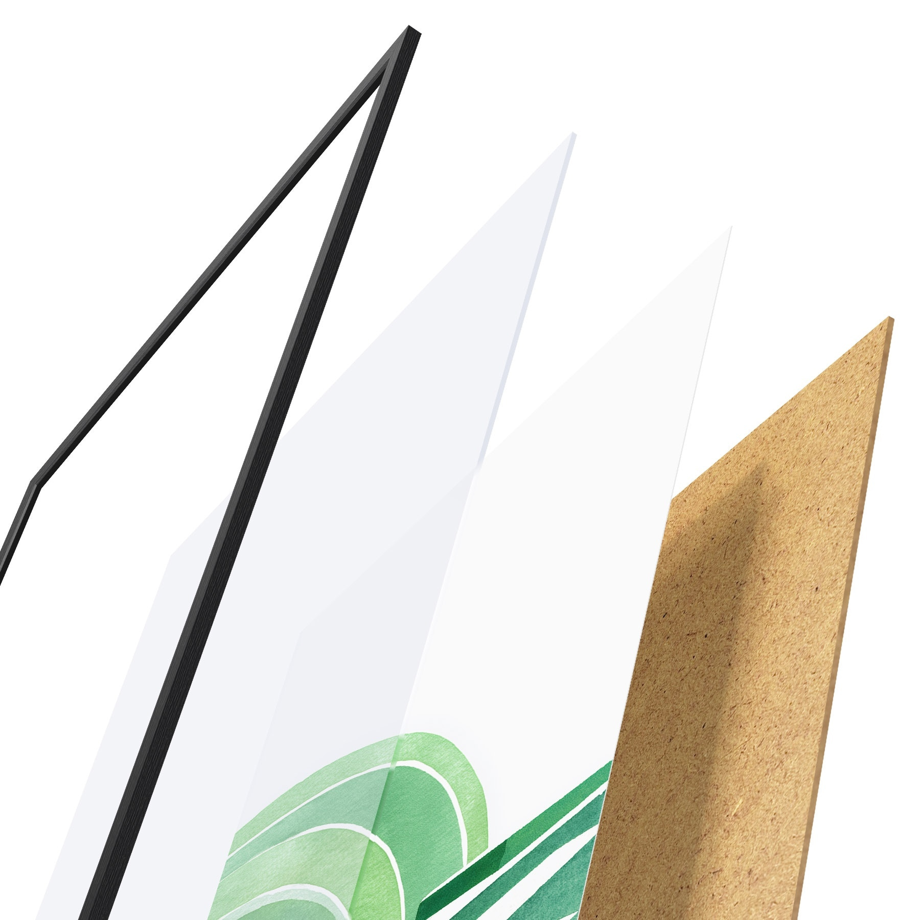 El póster consta de marco, plexiglás, imagen impresa y soporte de aglomerado. El póster puede colgarse inmediatamente en la pared gracias a los soportes de la parte posterior.