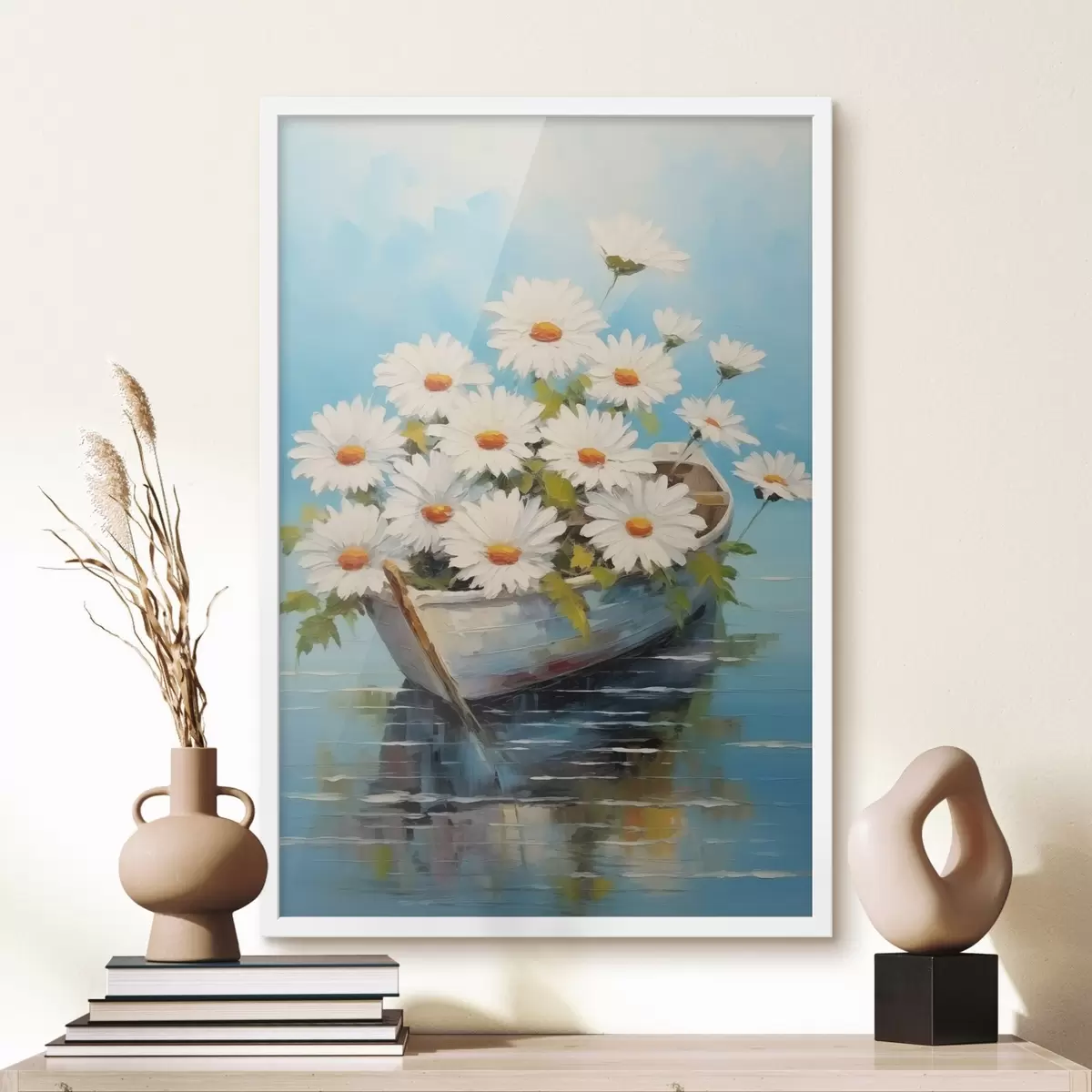 Poster Margaritas en una barca sobre el agua f44987