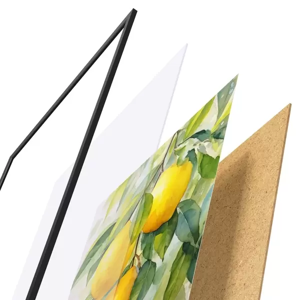 El póster consta de marco, plexiglás, imagen impresa y soporte de aglomerado. El póster puede colgarse inmediatamente en la pared gracias a los soportes de la parte posterior.