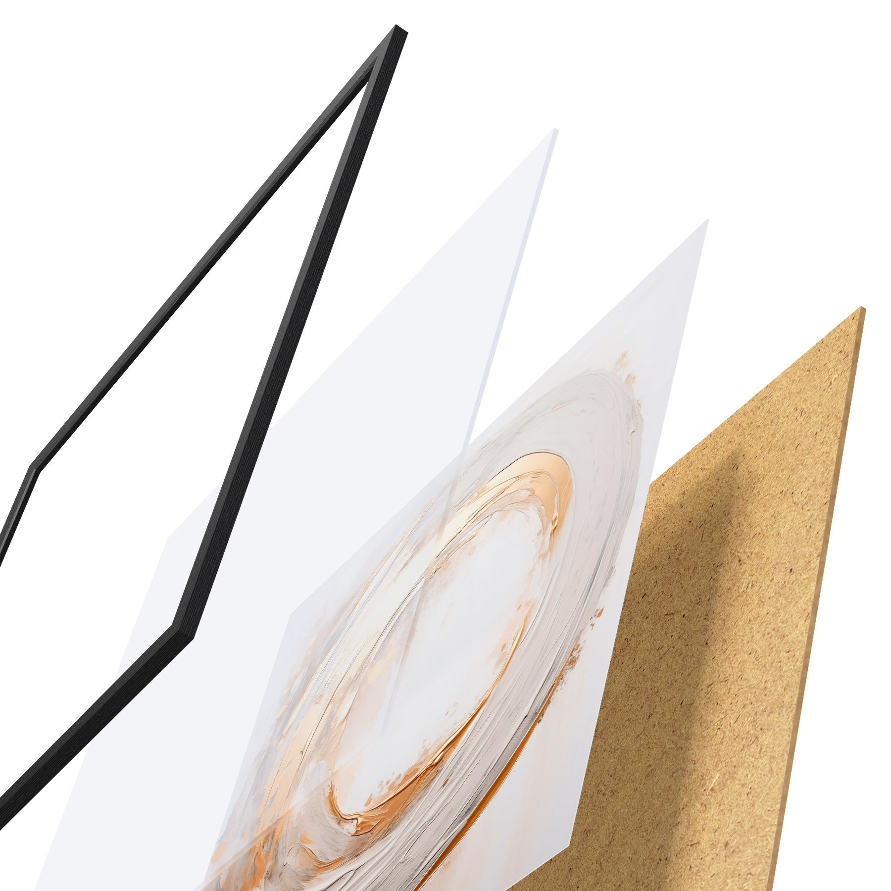 El póster consta de marco, plexiglás, imagen impresa y soporte de aglomerado. El póster puede colgarse inmediatamente en la pared gracias a los soportes de la parte posterior.
