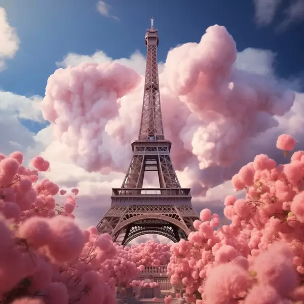 Poster Torre Eiffel en nubes rosas en estilo fantasía f45036