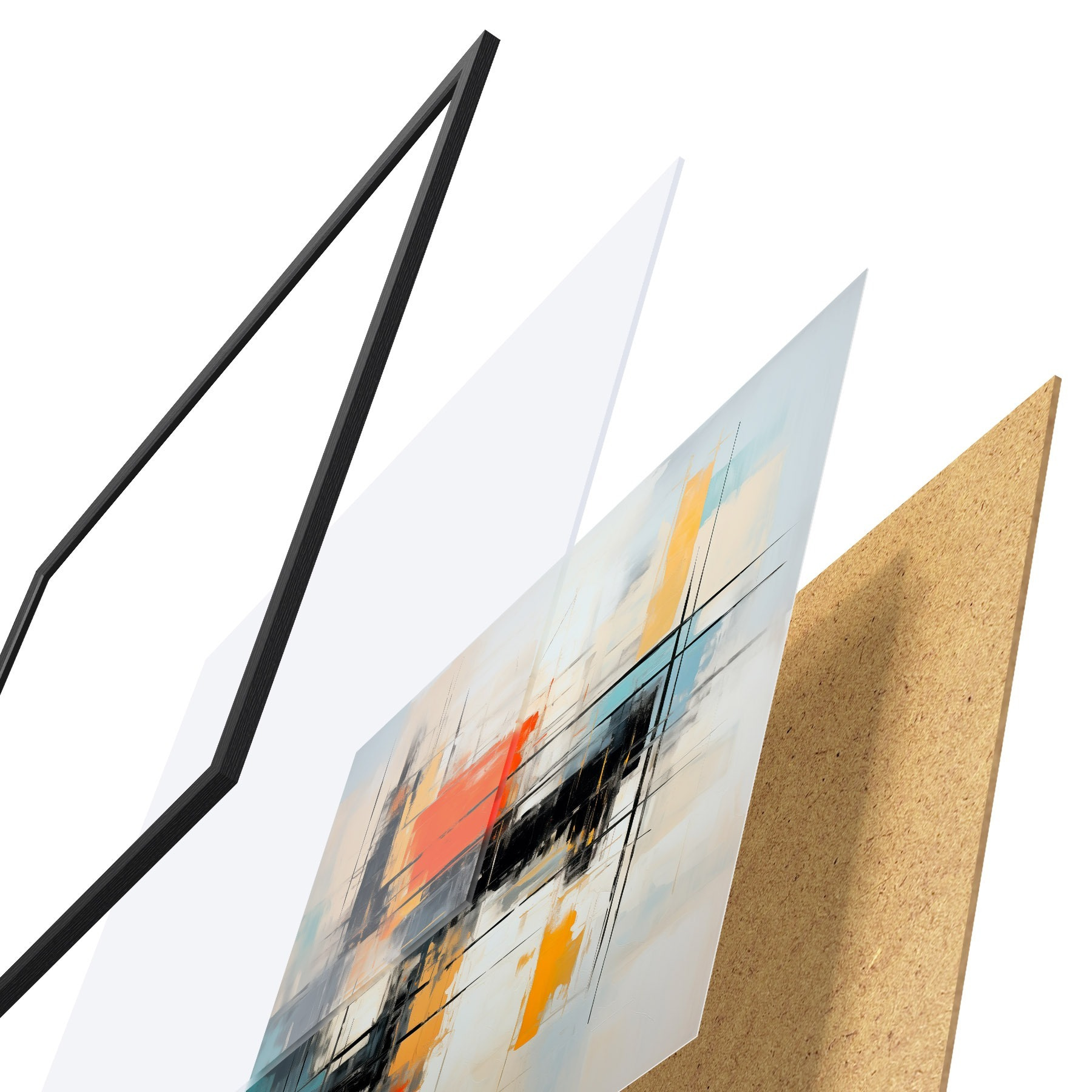 El póster consta de marco, plexiglás, imagen impresa y soporte de aglomerado. El póster puede colgarse inmediatamente en la pared gracias a los soportes de la parte posterior.