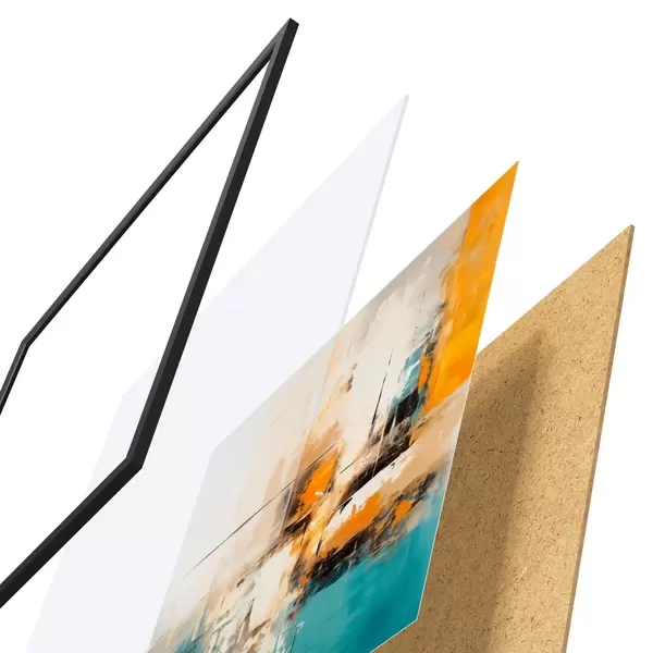 El póster consta de marco, plexiglás, imagen impresa y soporte de aglomerado. El póster puede colgarse inmediatamente en la pared gracias a los soportes de la parte posterior.