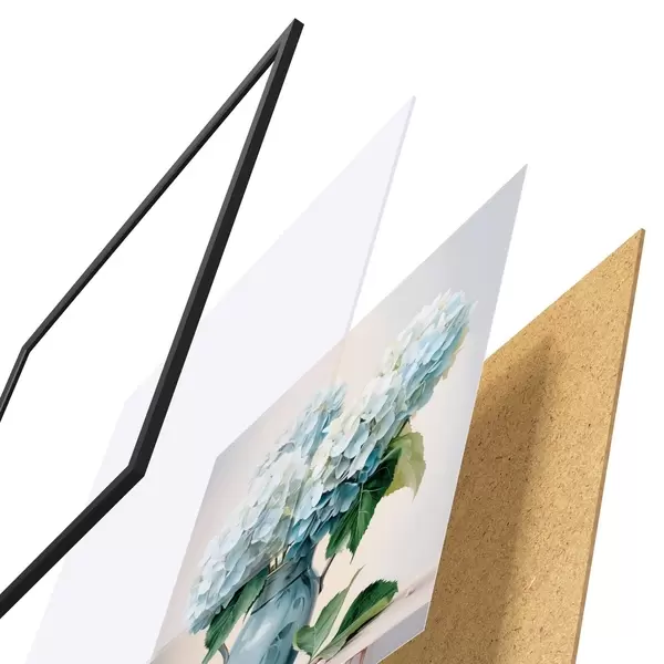 El póster consta de marco, plexiglás, imagen impresa y soporte de aglomerado. El póster puede colgarse inmediatamente en la pared gracias a los soportes de la parte posterior.