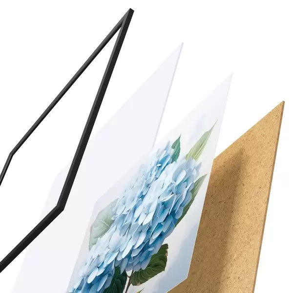 El póster consta de marco, plexiglás, imagen impresa y soporte de aglomerado. El póster puede colgarse inmediatamente en la pared gracias a los soportes de la parte posterior.