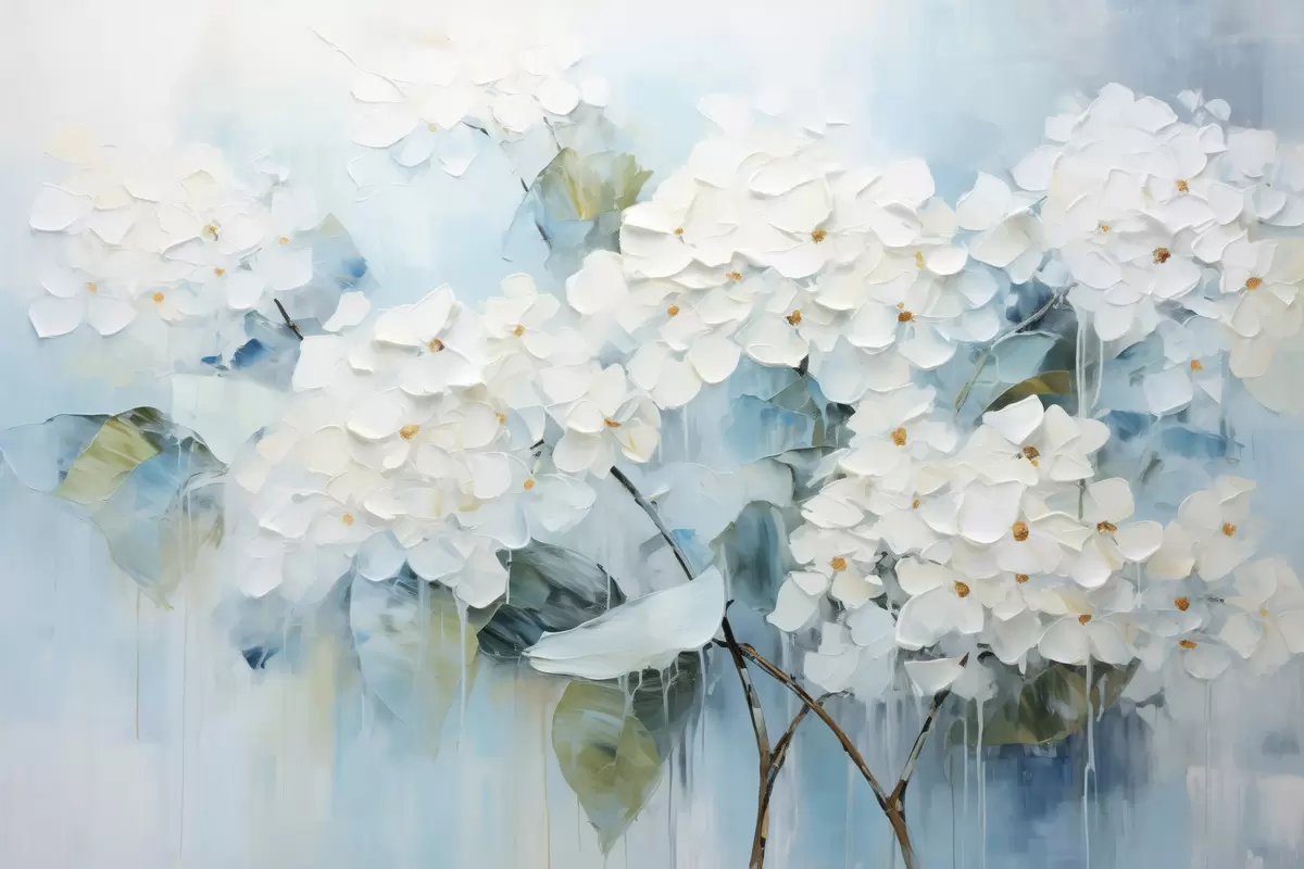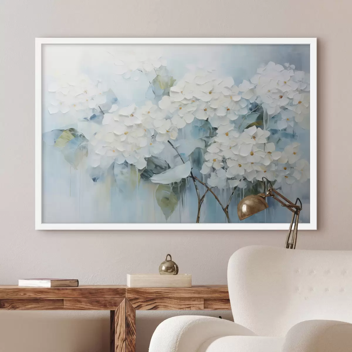 Poster Hortensias blancas en flor al óleo Nr f45051
