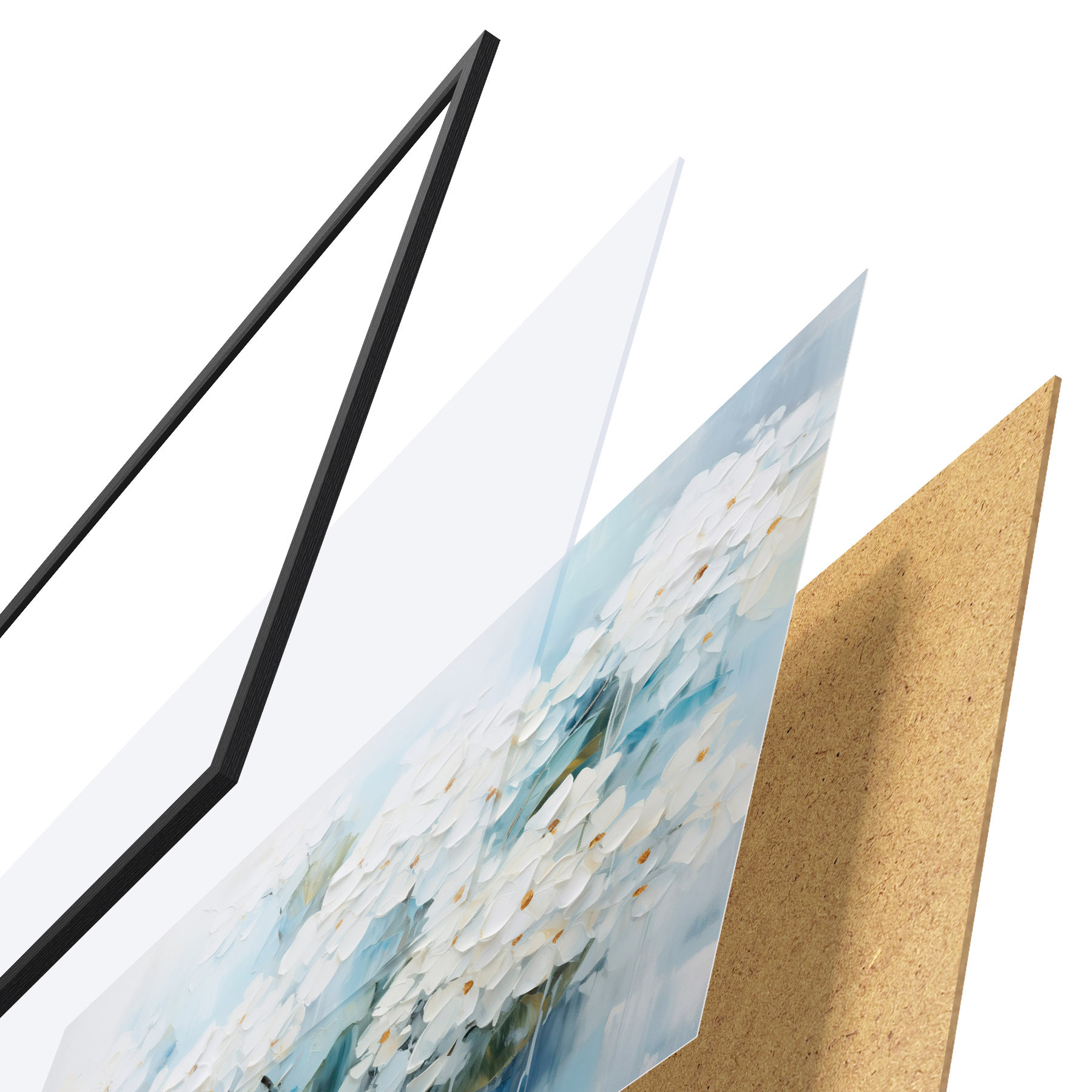 El póster consta de marco, plexiglás, imagen impresa y soporte de aglomerado. El póster puede colgarse inmediatamente en la pared gracias a los soportes de la parte posterior.