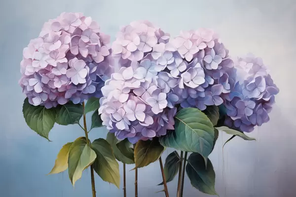 Poster Hortensias rosas y lilas en estilo pictórico Nr f45055