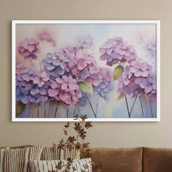 Poster Campo de delicadas hortensias en tonos pastel f45057