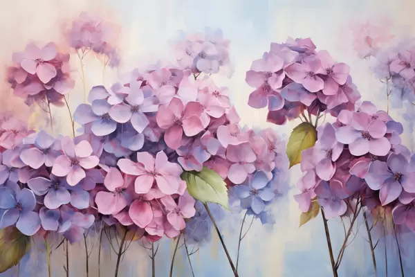 Poster Campo de delicadas hortensias en tonos pastel Nr f45057