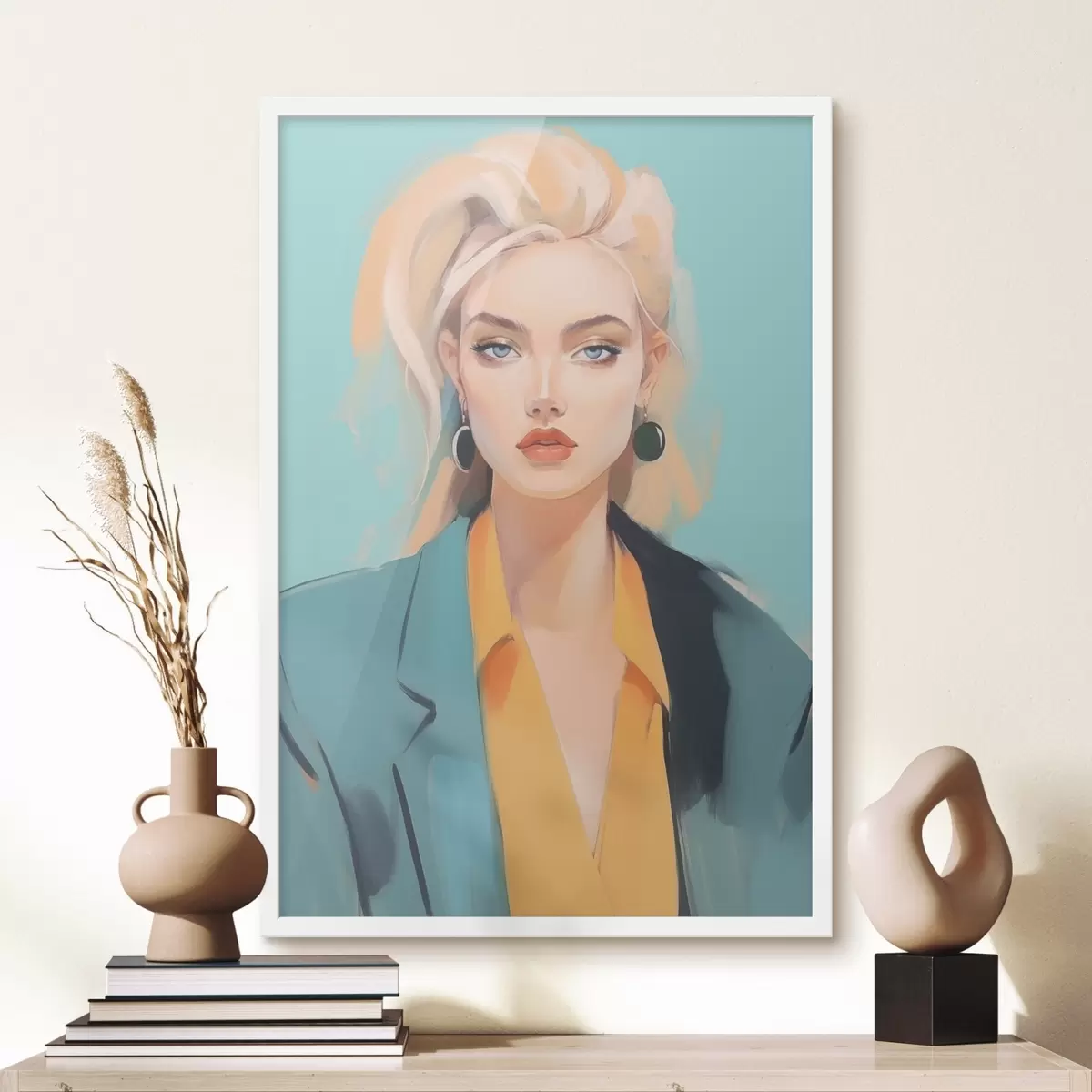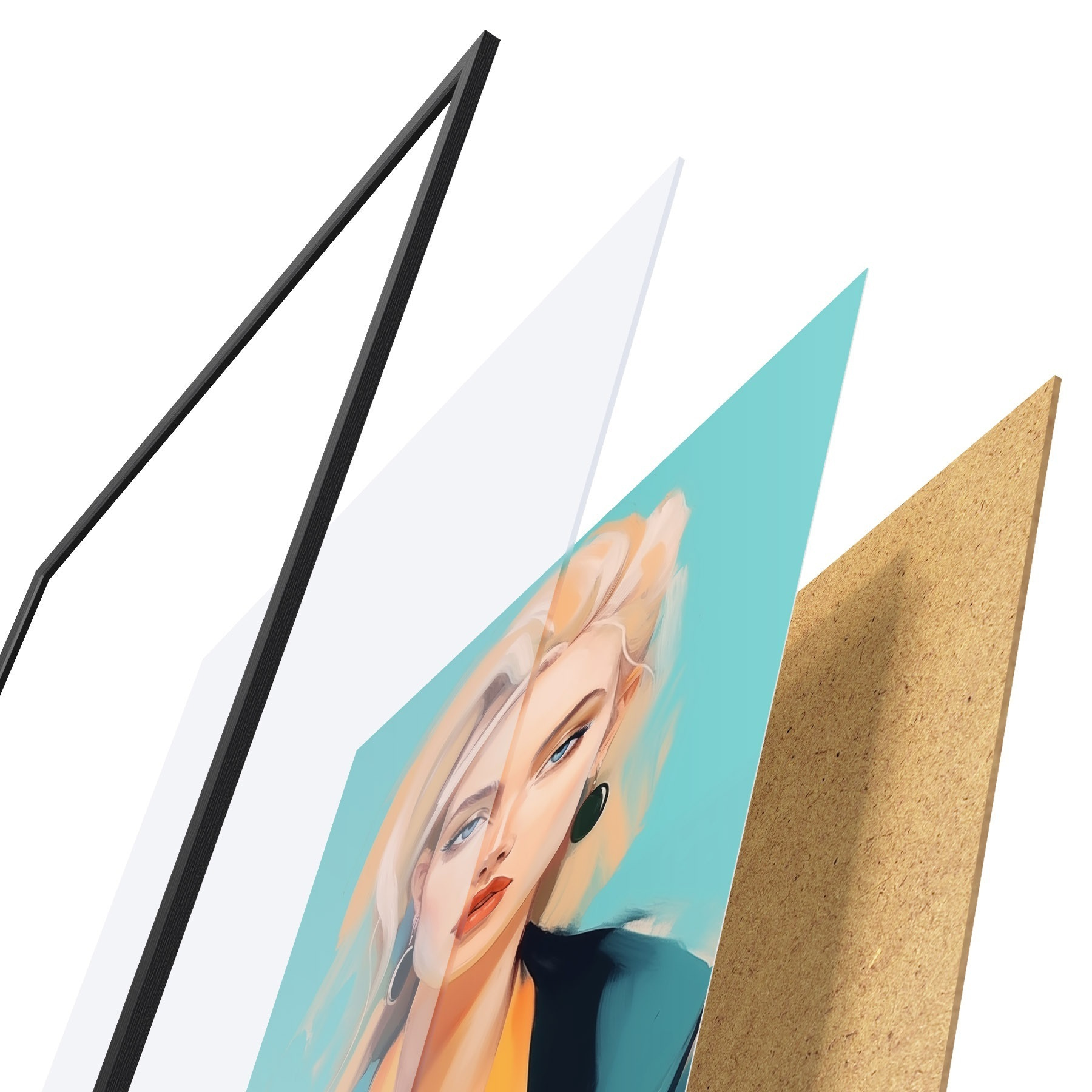 El póster consta de marco, plexiglás, imagen impresa y soporte de aglomerado. El póster puede colgarse inmediatamente en la pared gracias a los soportes de la parte posterior.