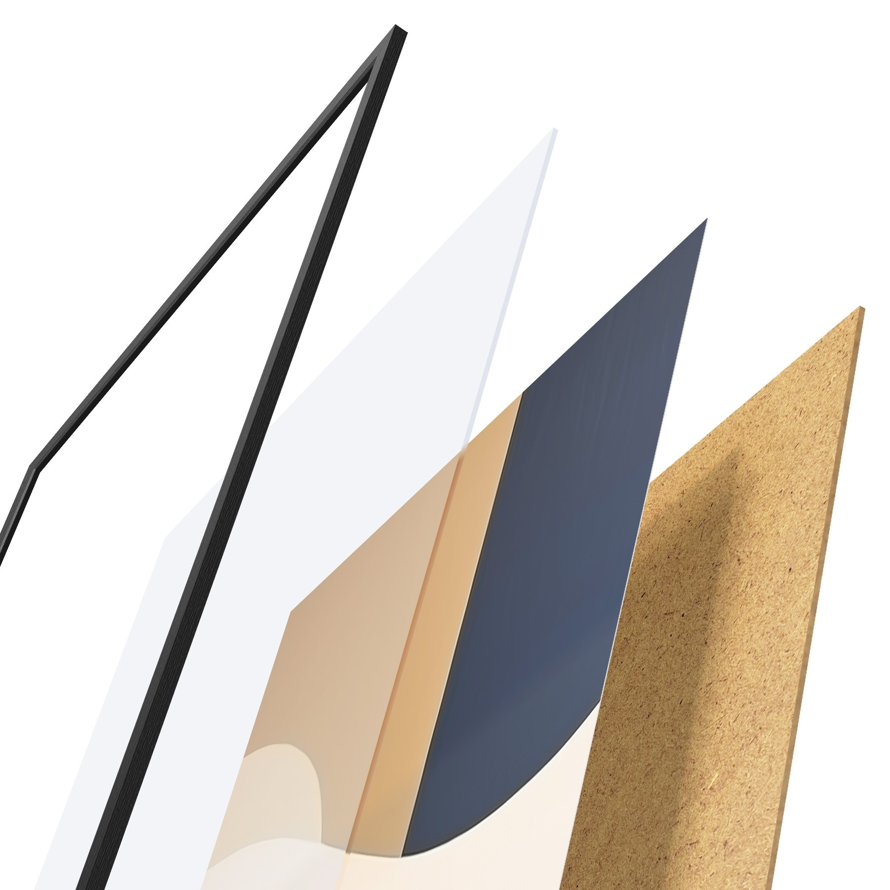 El póster consta de marco, plexiglás, imagen impresa y soporte de aglomerado. El póster puede colgarse inmediatamente en la pared gracias a los soportes de la parte posterior.