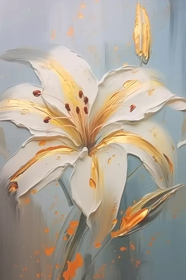 Poster Lirio blanco con trazos amarillos sobre fondo azul Nr f45077
