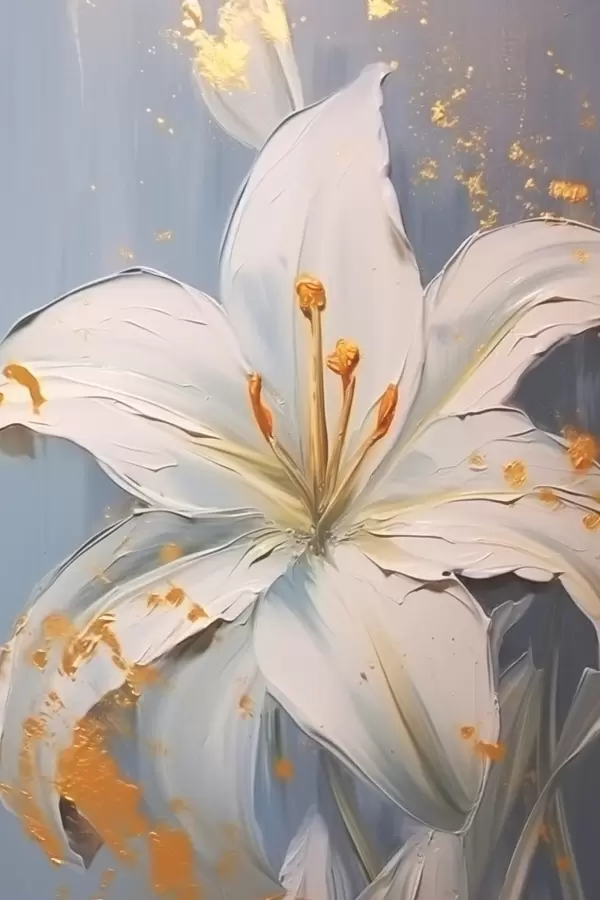 Poster Lirio blanco con detalles amarillos sobre fondo azul f45078