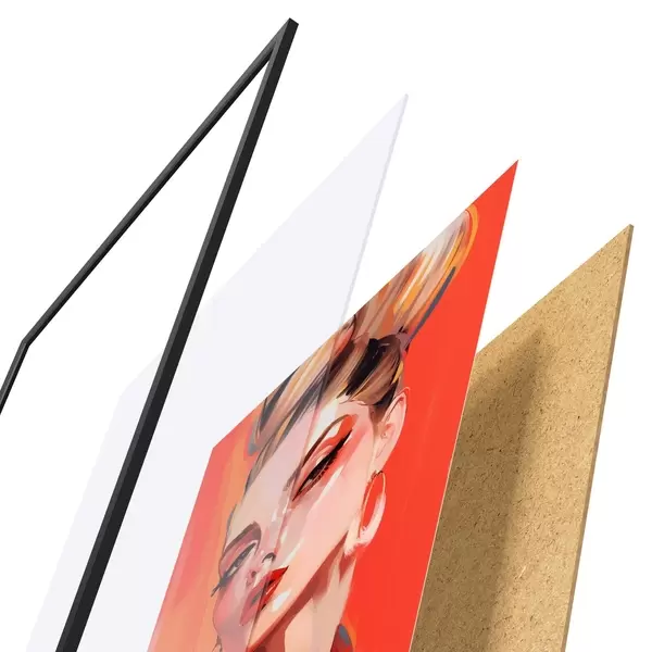 El póster consta de marco, plexiglás, imagen impresa y soporte de aglomerado. El póster puede colgarse inmediatamente en la pared gracias a los soportes de la parte posterior.