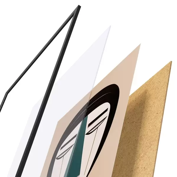 El póster consta de marco, plexiglás, imagen impresa y soporte de aglomerado. El póster puede colgarse inmediatamente en la pared gracias a los soportes de la parte posterior.