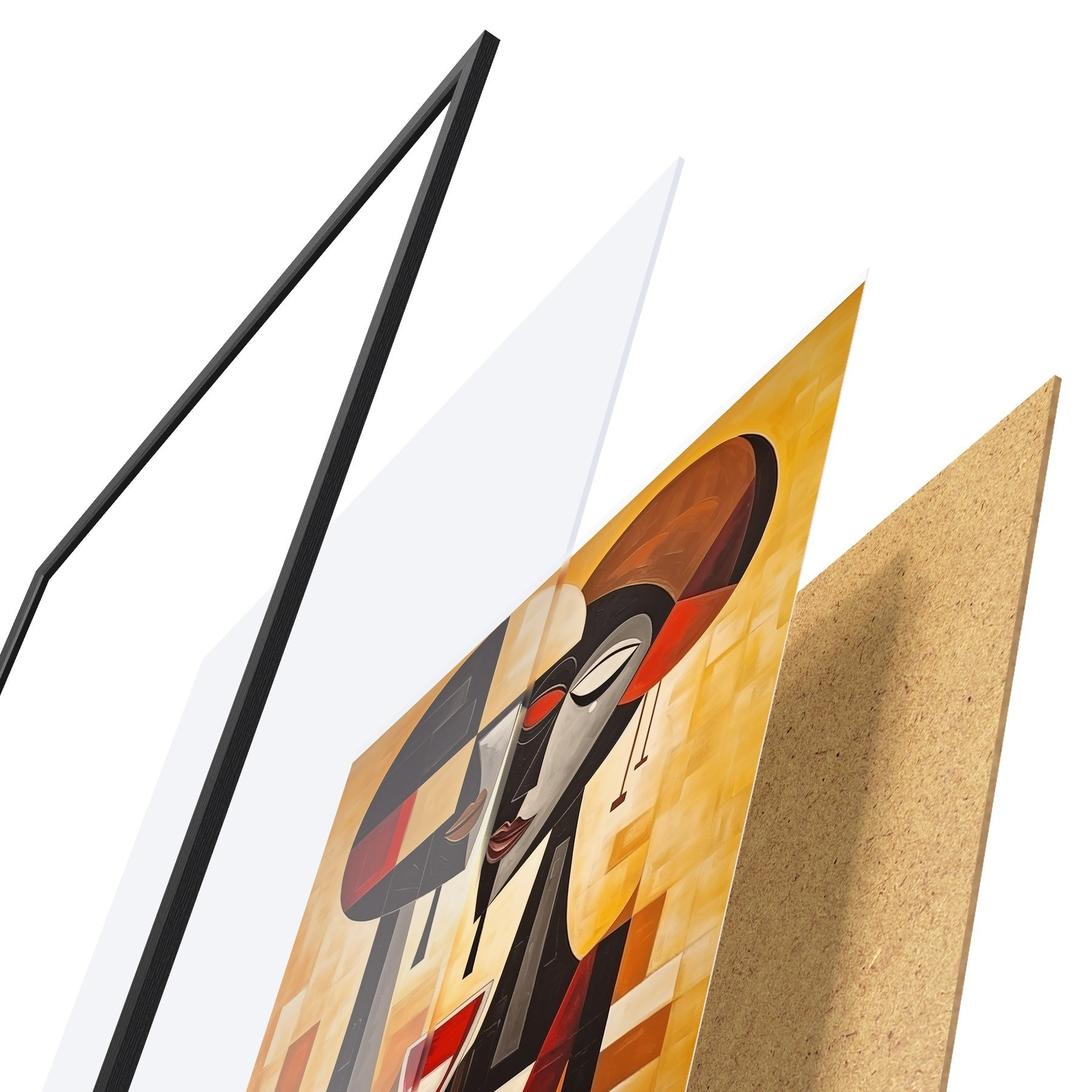 El póster consta de marco, plexiglás, imagen impresa y soporte de aglomerado. El póster puede colgarse inmediatamente en la pared gracias a los soportes de la parte posterior.