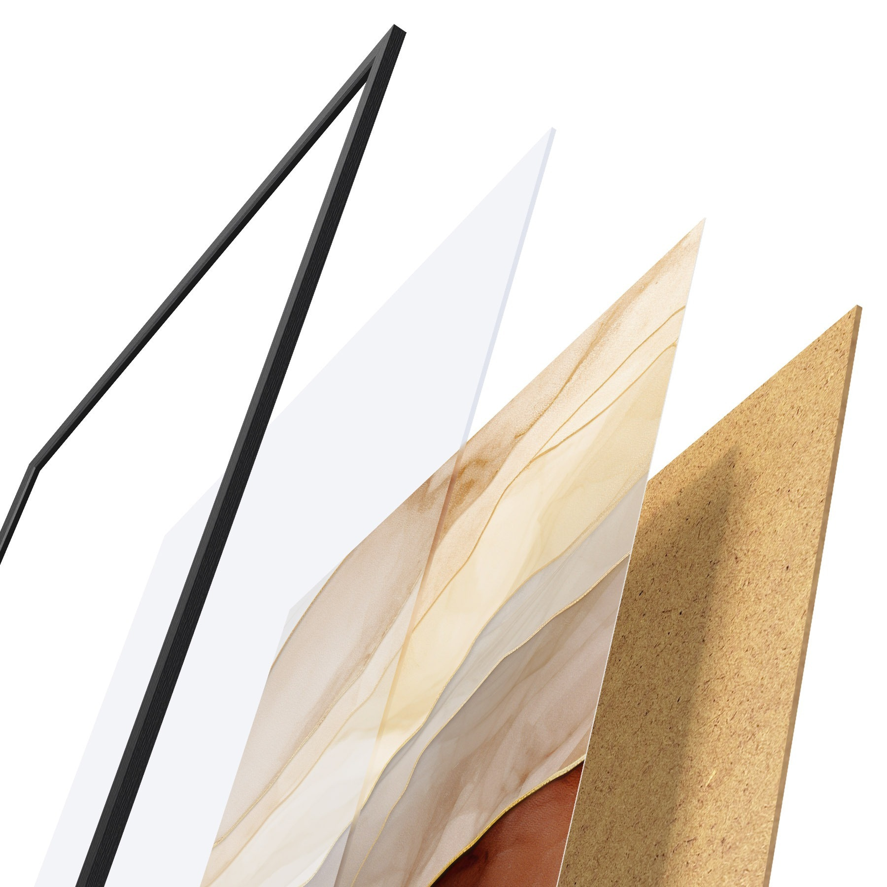 El póster consta de marco, plexiglás, imagen impresa y soporte de aglomerado. El póster puede colgarse inmediatamente en la pared gracias a los soportes de la parte posterior.