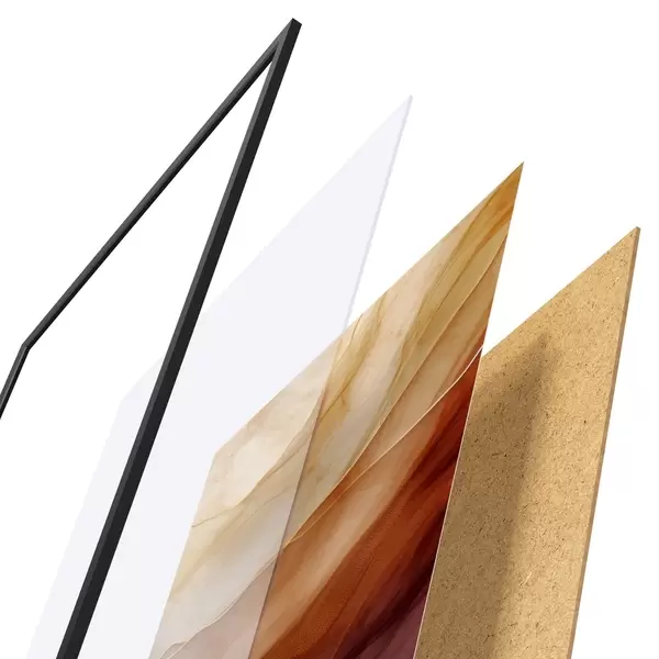 El póster consta de marco, plexiglás, imagen impresa y soporte de aglomerado. El póster puede colgarse inmediatamente en la pared gracias a los soportes de la parte posterior.