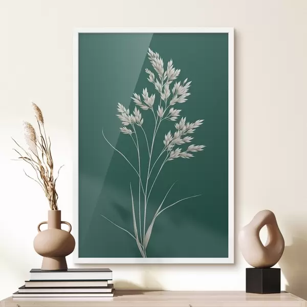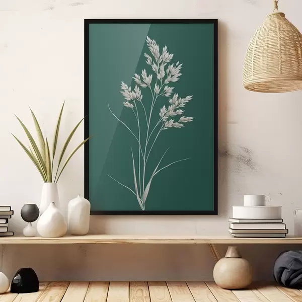 Poster botánico, minimal, hierba, tallo, fondo verde, natural, planta, plano Nr f45091