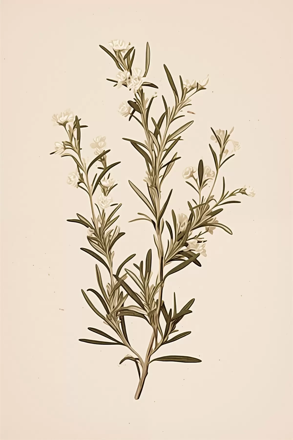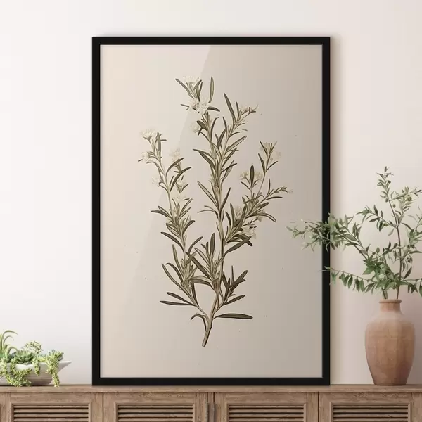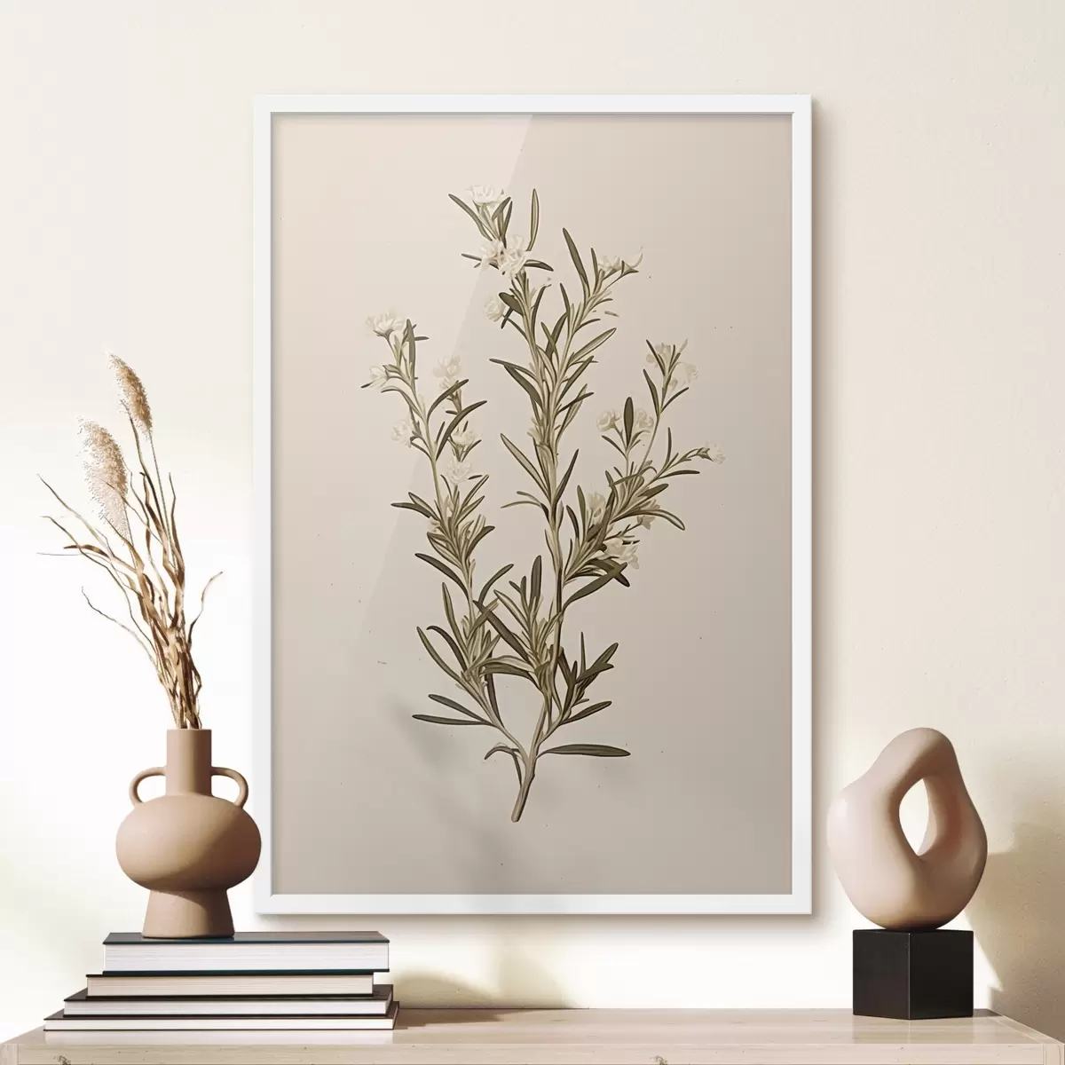 Poster botánico, rama, fondo beige, hierba, minimalista, planta, hojas verdes, tallo Nr f45098