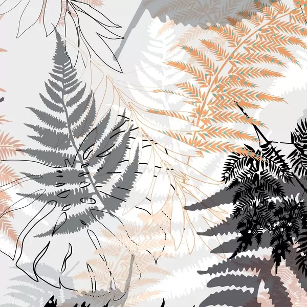 Poster helecho, hojas abstractas, patrón, diseño plano, contraste, tonos grises, botánico, superposición Nr f45101