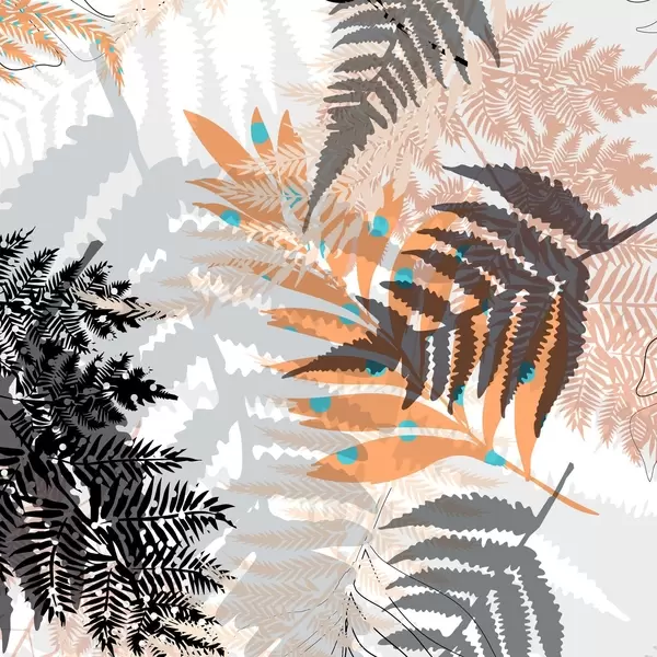 Poster follaje selvático, estilo moderno, arte lineal, plantas en capas, colores apagados, naturaleza Nr f45102