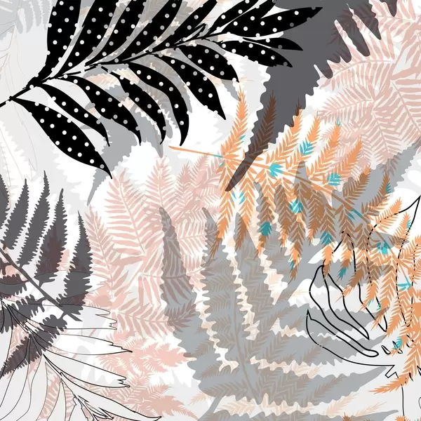 Poster hojas tropicales, gráfico, textura, beige y negro, silueta, contemporáneo, planta f45103