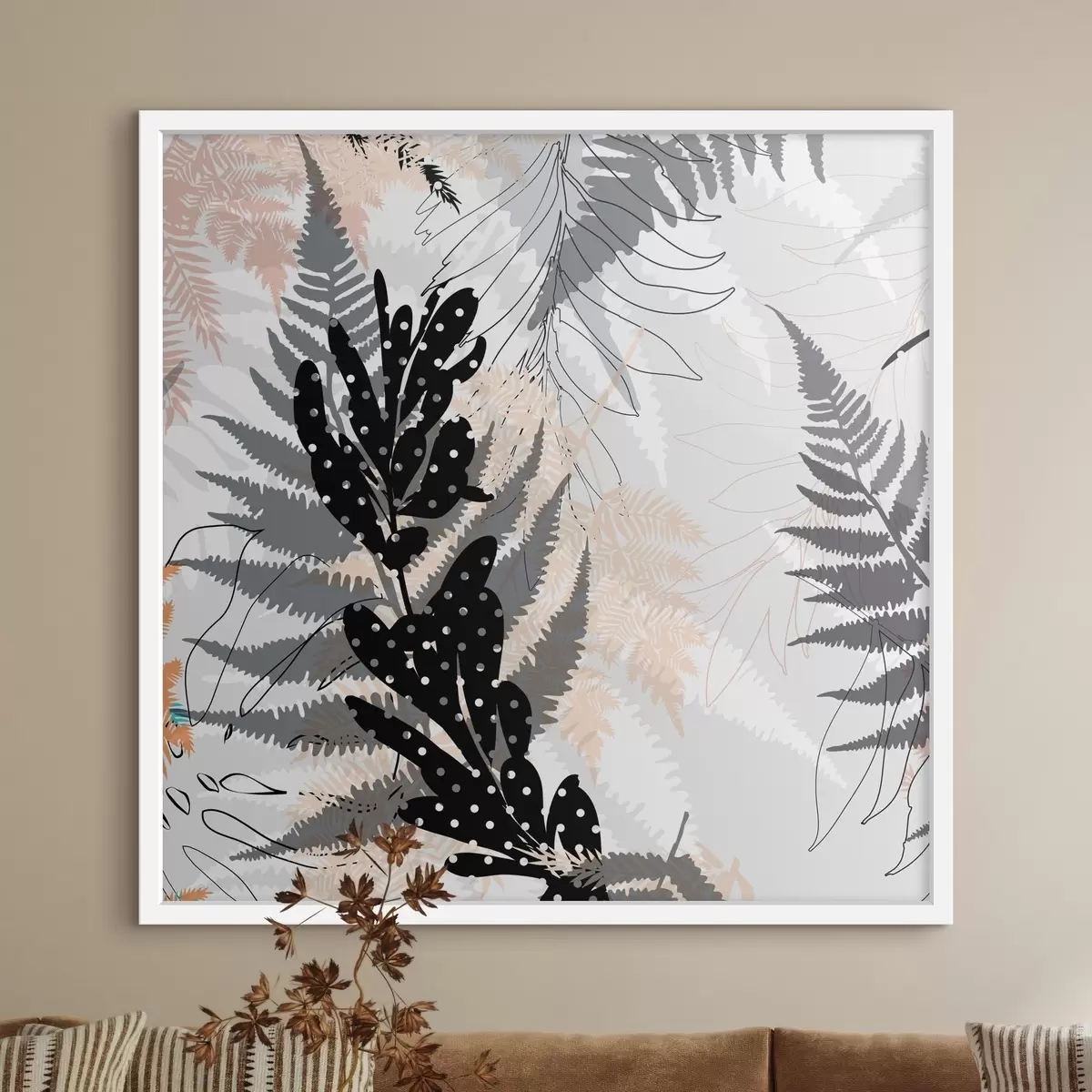 Poster impresión de naturaleza, follaje decorativo, mezcla de selva, formas de helecho, paleta neutra, arte de la hoja Nr f45104